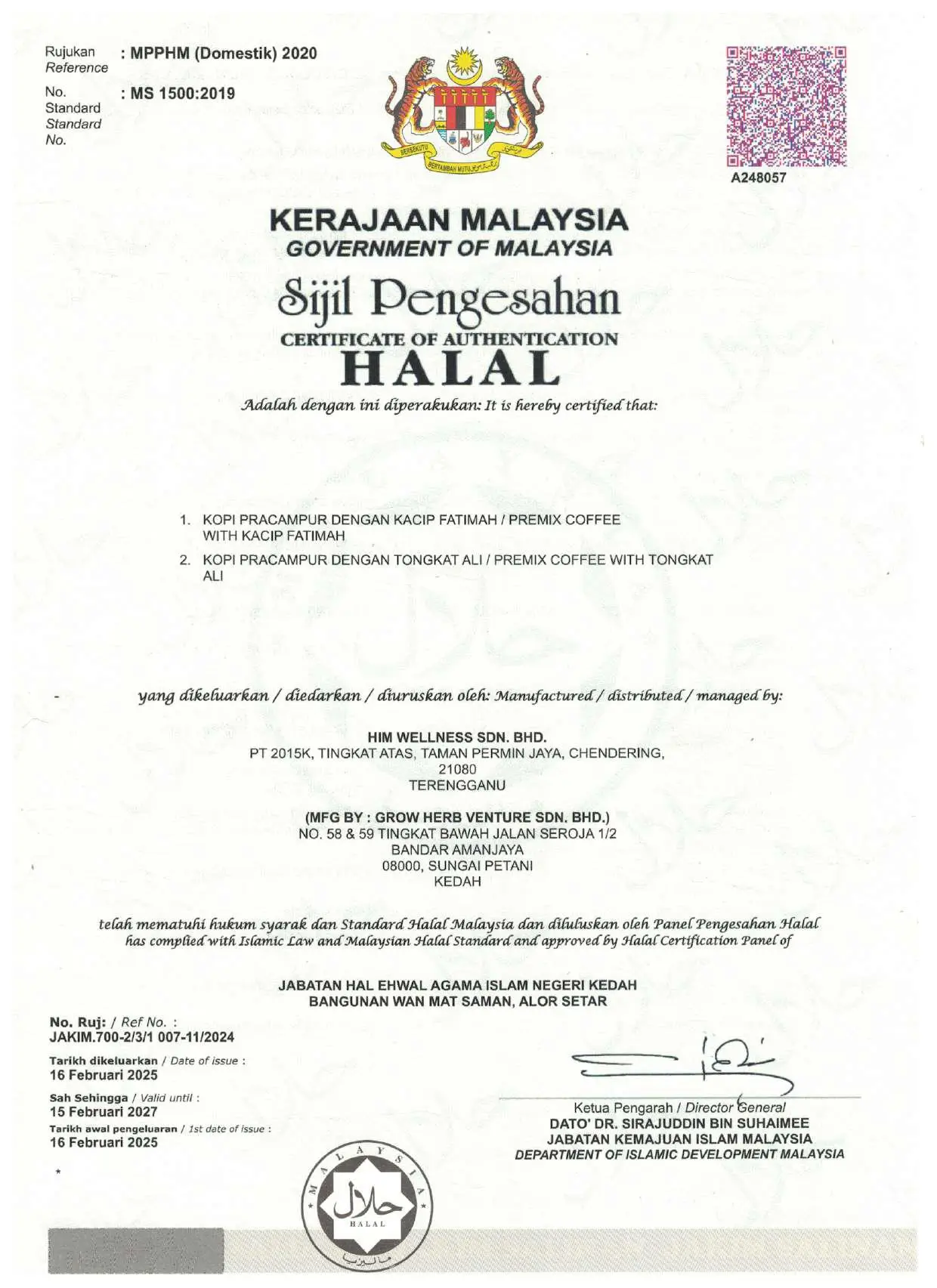 Anda tidak perlu risau untuk mengamalkan HIMCoffee ini. TERBUKTI HALAL, lulus ujian untuk pengkelasan produk dan SIRIM