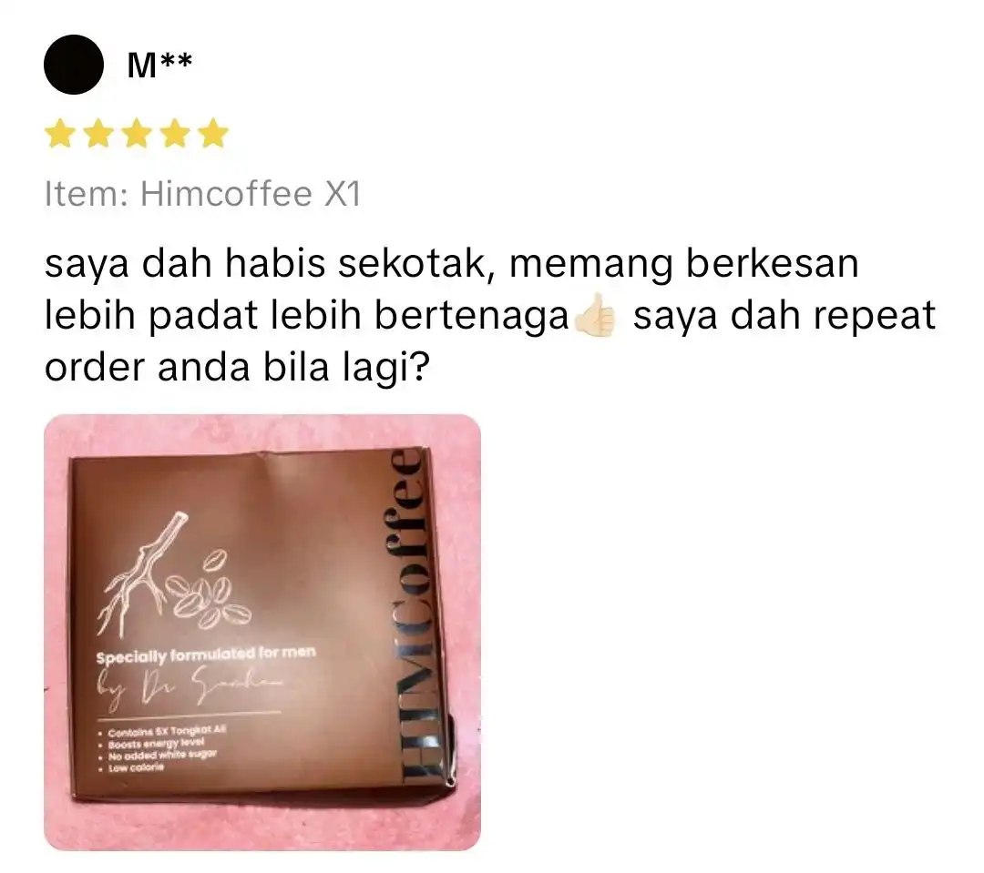 Mungkin ada yang masih ragu-ragu, betul ke HIMCoffee ni berkesan? Ini antara ribuan feedback yang kami terima.